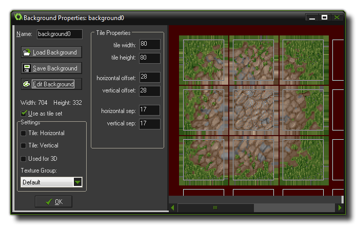 after that! When importing these new tiles into GameMaker, it is important to make sure you point GameMaker to the tile inside the "smear" using the x and y offset options in the background resource window as this